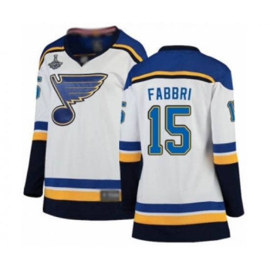 Women's St. Louis Blues #15 Robby Fabbri Fanatics Branded White Away Breakaway 2019 Stanley Cup Champions Hockey Jersey