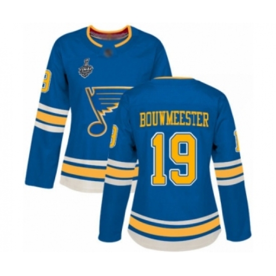 Women's St. Louis Blues #19 Jay Bouwmeester Fanatics Branded Royal Blue Home Breakaway 2019 Stanley Cup Final Bound Hockey Jersey