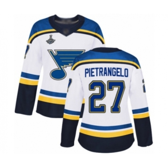 Women's St. Louis Blues #27 Alex Pietrangelo Authentic White Away 2019 Stanley Cup Champions Hockey Jersey