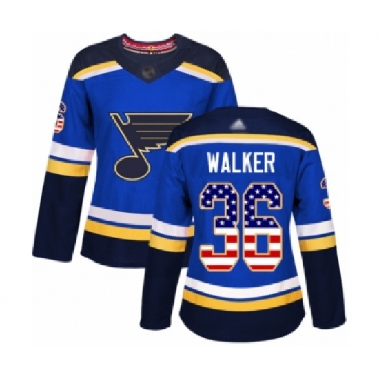 Women's St. Louis Blues #36 Nathan Walker Authentic Blue USA Flag Fashion Hockey Jersey