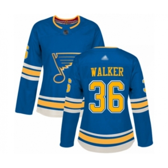 Women's St. Louis Blues #36 Nathan Walker Authentic Royal Blue Home Hockey Jersey