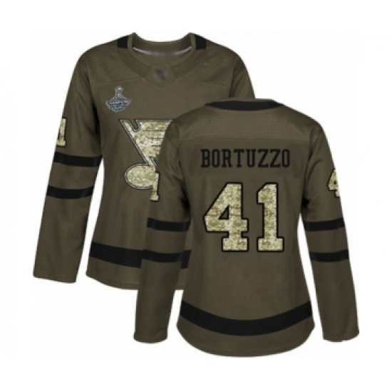 Women's St. Louis Blues #41 Robert Bortuzzo Authentic Green Salute to Service 2019 Stanley Cup Champions Hockey Jersey