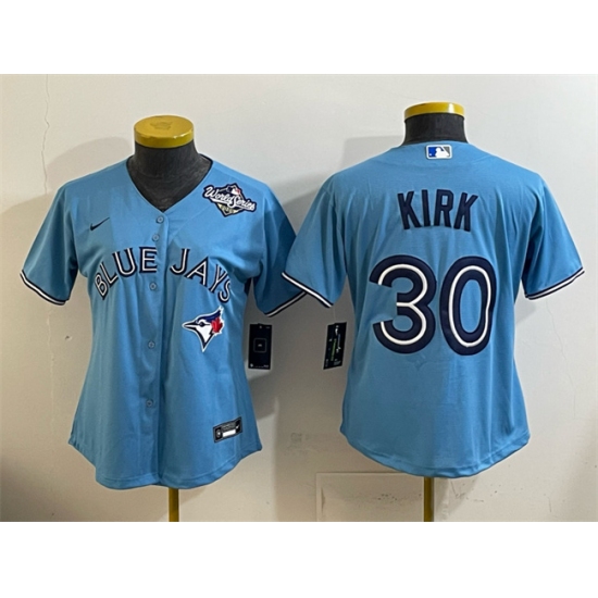 >Women's Toronto Blue Jays #30 Alejandro Kirk Blue 2025 World Series Cool Base Stitched Baseball Jersey(Run Small)