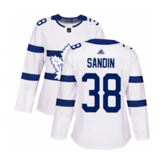 >Women's Toronto Maple Leafs #38 Rasmus Sandin Authentic White 2018 Stadium Series Hockey Jersey