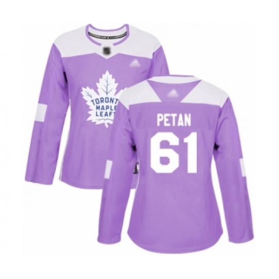 >Women's Toronto Maple Leafs #61 Nic Petan Authentic Purple Fights Cancer Practice Hockey Jersey