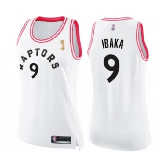Women's Toronto Raptors #9 Serge Ibaka Swingman White Pink Fashion 2019 Basketball Finals Champions Jersey