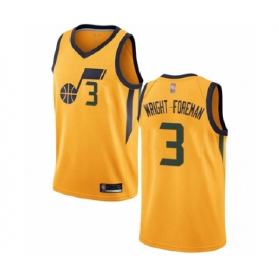 Women's Utah Jazz #3 Justin Wright-Foreman Swingman Gold Basketball Jersey Statement Edition