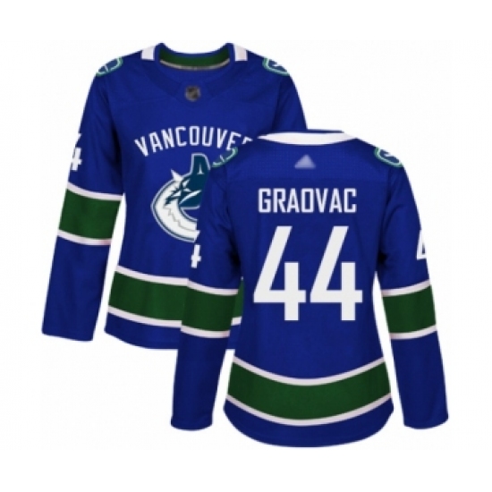 Women's Vancouver Canucks #44 Tyler Graovac Authentic Blue Home Hockey Jersey
