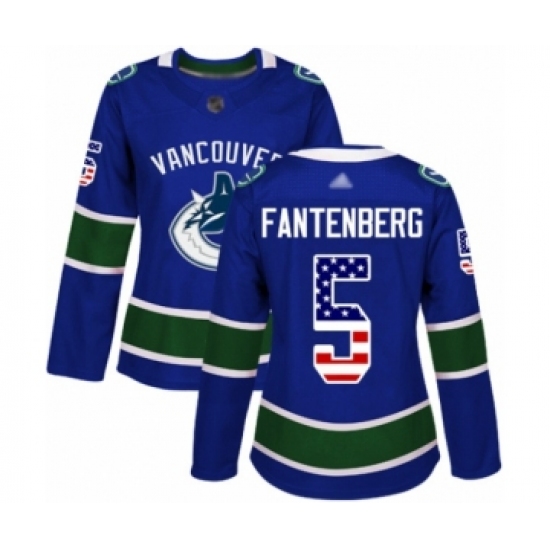 >Women's Vancouver Canucks #5 Oscar Fantenberg Authentic Blue USA Flag Fashion Hockey Jersey