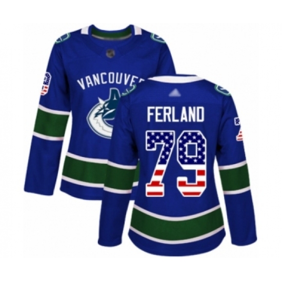 >Women's Vancouver Canucks #79 Michael Ferland Authentic Blue USA Flag Fashion Hockey Jersey