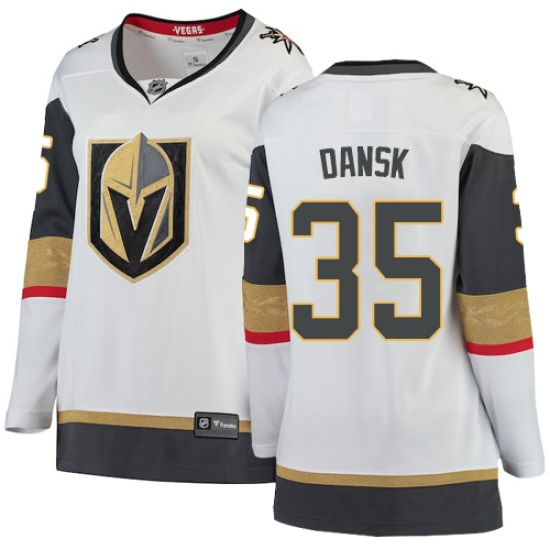 Women's Vegas Golden Knights #35 Oscar Dansk Authentic White Away Fanatics Branded Breakaway NHL Jersey