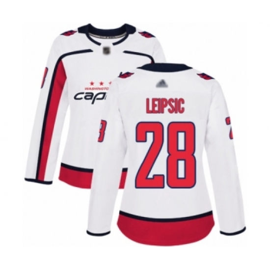 Women's Washington Capitals #28 Brendan Leipsic Authentic White Away Hockey Jersey