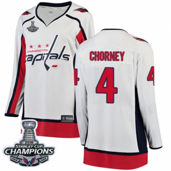 Women's Washington Capitals #4 Taylor Chorney Fanatics Branded White Away Breakaway 2018 Stanley Cup Final Champions NHL Jersey