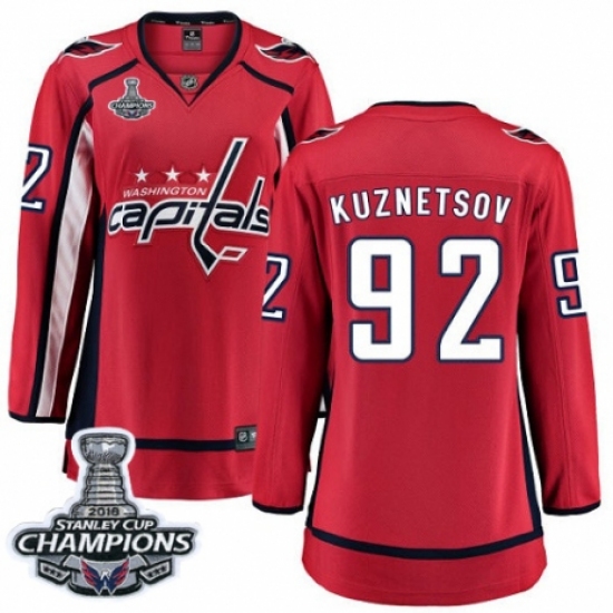 Women's Washington Capitals #92 Evgeny Kuznetsov Fanatics Branded Red Home Breakaway 2018 Stanley Cup Final Champions NHL Jersey