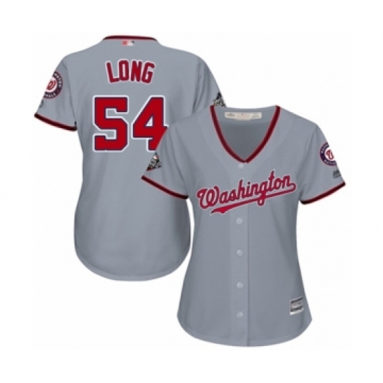 >Women's Washington Nationals #54 Kevin Long Authentic Grey Road Cool Base 2019 World Series Bound Baseball Jersey