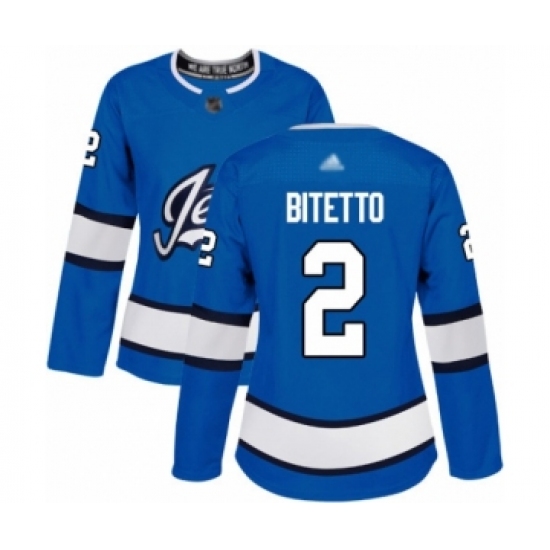 Women's Winnipeg Jets #2 Anthony Bitetto Authentic Blue Alternate Hockey Jersey