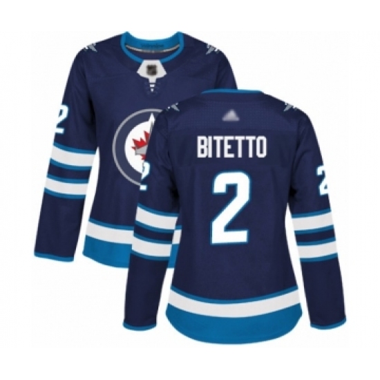 Women's Winnipeg Jets #2 Anthony Bitetto Authentic Navy Blue Home Hockey Jersey