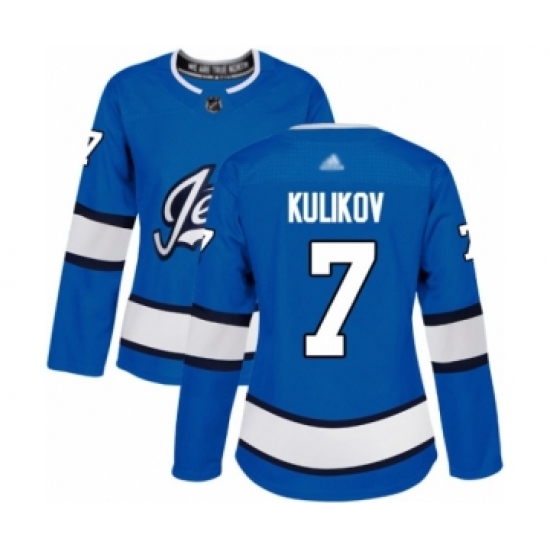 Women's Winnipeg Jets #7 Dmitry Kulikov Authentic Blue Alternate Hockey Jersey