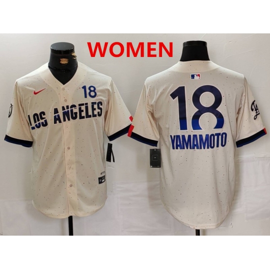 >Women's los angeles dodgers #18 yoshinobu yamamoto cream 2024 city connect limited jersey