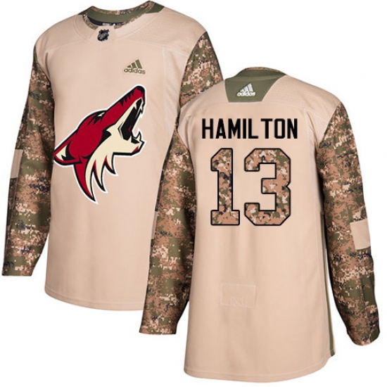 >Youth Adidas Arizona Coyotes #13 Freddie Hamilton Authentic Camo Veterans Day Practice NHL Jersey
