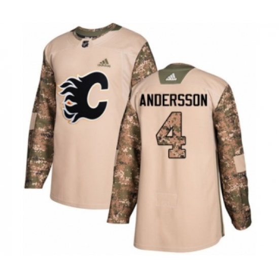 Men's Adidas Calgary Flames #4 Rasmus Andersson Authentic Camo Veterans Day Practice NHL Jersey