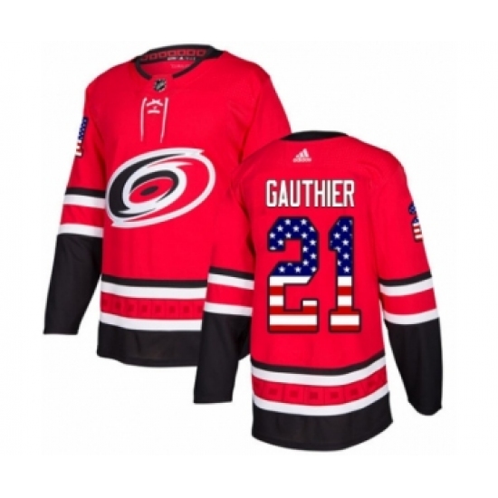 >Youth Adidas Carolina Hurricanes #21 Julien Gauthier Authentic Red USA Flag Fashion NHL Jersey