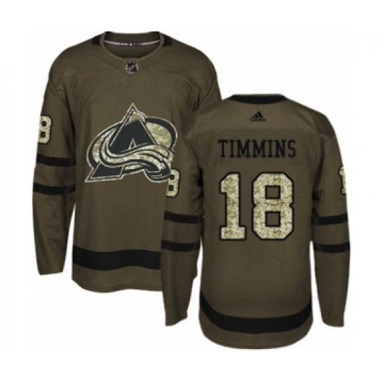 Women's Adidas Colorado Avalanche #18 Conor Timmins Authentic Green Salute to Service NHL Jersey