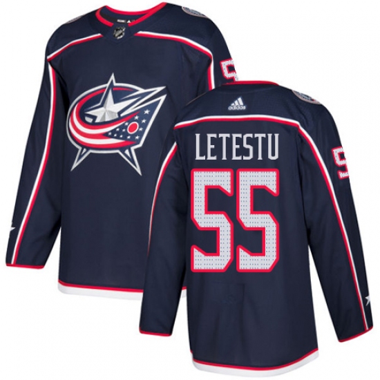 >Youth Adidas Columbus Blue Jackets #55 Mark Letestu Authentic Navy Blue Home NHL Jersey