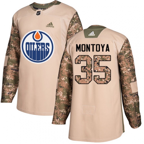 >Youth Adidas Edmonton Oilers #35 Al Montoya Authentic Camo Veterans Day Practice NHL Jersey