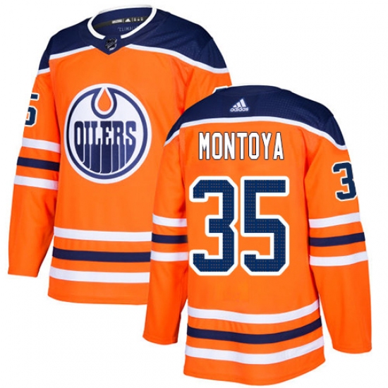 >Youth Adidas Edmonton Oilers #35 Al Montoya Authentic Orange Home NHL Jersey
