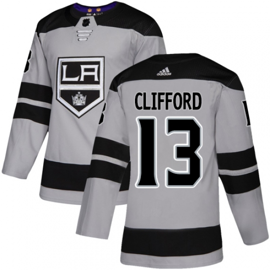 >Youth Adidas Los Angeles Kings #13 Kyle Clifford Authentic Gray Alternate NHL Jersey