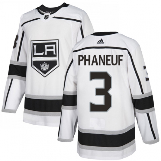 >Youth Adidas Los Angeles Kings #3 Dion Phaneuf Authentic White Away NHL Jersey