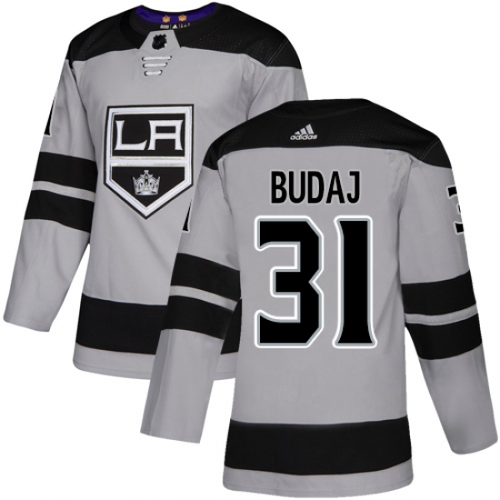 >Youth Adidas Los Angeles Kings #31 Peter Budaj Authentic Gray Alternate NHL Jersey