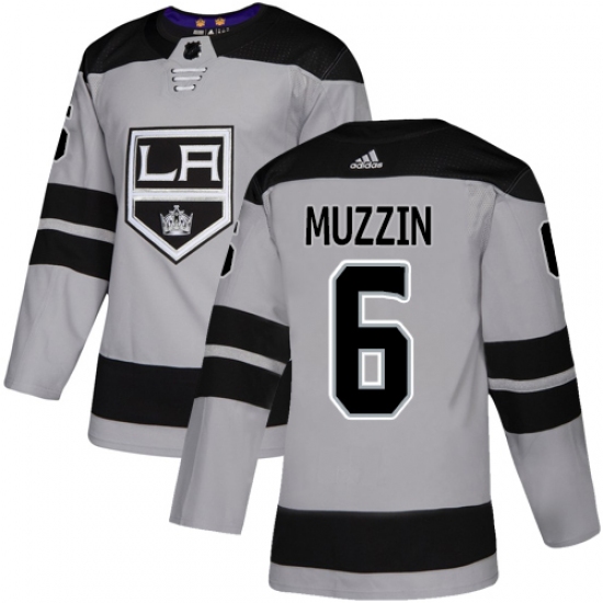 >Youth Adidas Los Angeles Kings #6 Jake Muzzin Authentic Gray Alternate NHL Jersey