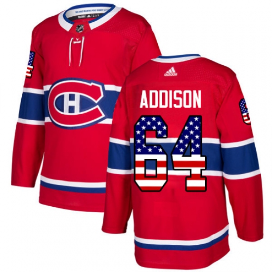 Home>NHL>Montreal Canadiens>Jeremiah Addison>Youth Adidas Montreal Canadiens #64 Jeremiah Addison Authentic Red USA Flag Fashion NHL Jersey