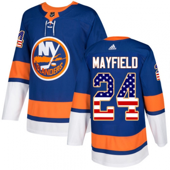 >Youth Adidas New York Islanders #24 Scott Mayfield Authentic Royal Blue USA Flag Fashion NHL Jersey