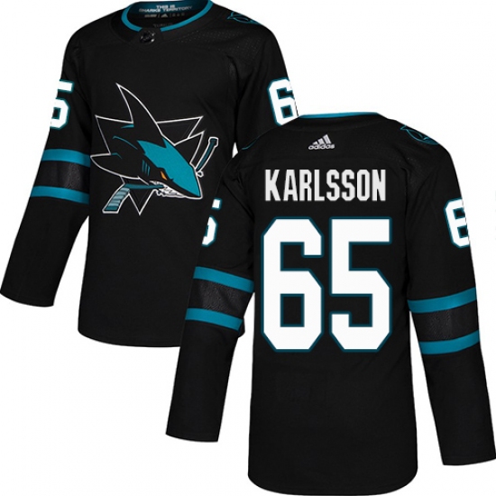 >Youth Adidas San Jose Sharks #65 Erik Karlsson Premier Black Alternate NHL Jersey