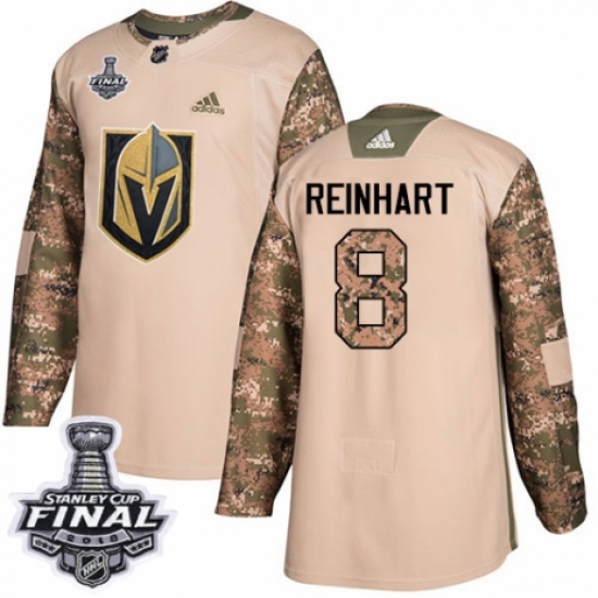 Youth Adidas Vegas Golden Knights #8 Griffin Reinhart Authentic Camo Veterans Day Practice 2018 Stanley Cup Final NHL Jersey