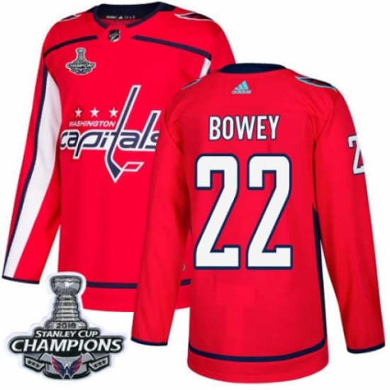 Youth Adidas Washington Capitals #22 Madison Bowey Authentic Red Home 2018 Stanley Cup Final Champions NHL Jersey
