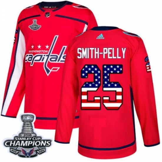 Youth Adidas Washington Capitals #25 Devante Smith-Pelly Authentic Red USA Flag Fashion 2018 Stanley Cup Final Champions NHL Jersey