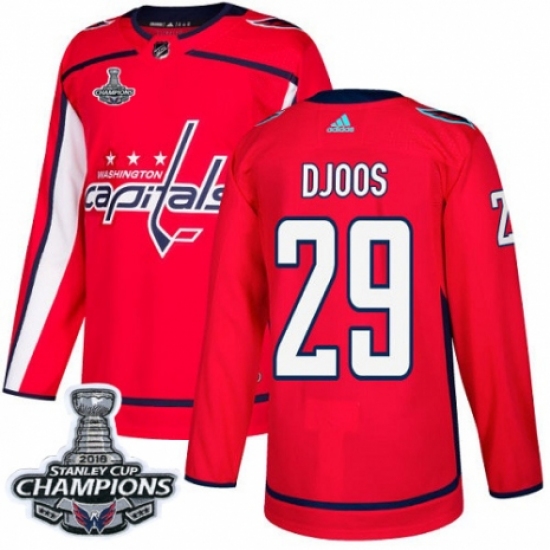 >Youth Adidas Washington Capitals #29 Christian Djoos Authentic Red Home 2018 Stanley Cup Final Champions NHL Jersey