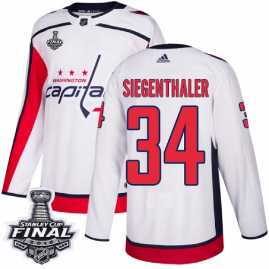 >Youth Adidas Washington Capitals #34 Jonas Siegenthaler Authentic White Away 2018 Stanley Cup Final NHL Jersey