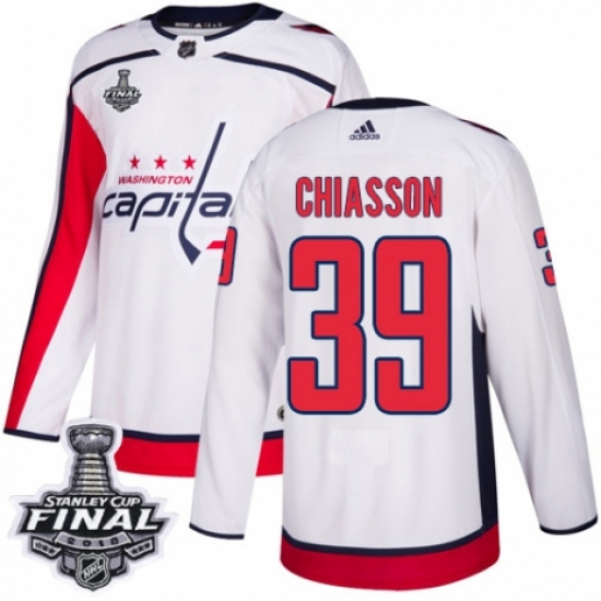 Youth Adidas Washington Capitals #39 Alex Chiasson Authentic White Away 2018 Stanley Cup Final NHL Jersey