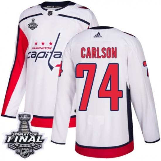 Youth Adidas Washington Capitals #74 John Carlson Authentic White Away 2018 Stanley Cup Final NHL Jersey
