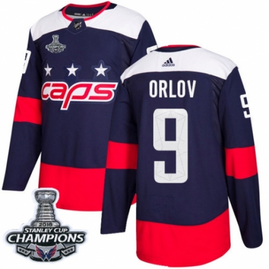 Men's Adidas Washington Capitals #9 Dmitry Orlov Authentic Navy Blue 2018 Stadium Series 2018 Stanley Cup Final Champions NHL Jersey