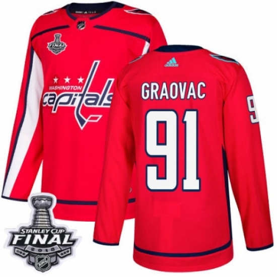 Youth Adidas Washington Capitals #91 Tyler Graovac Authentic Red Home 2018 Stanley Cup Final NHL Jersey