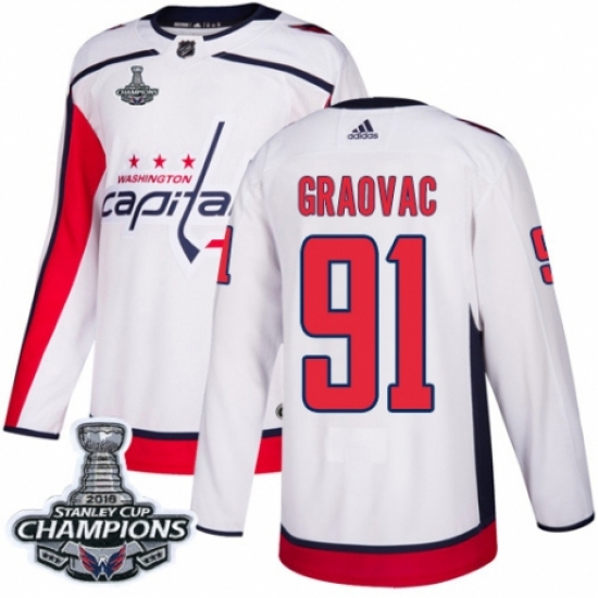 Youth Adidas Washington Capitals #91 Tyler Graovac Authentic White Away 2018 Stanley Cup Final Champions NHL Jersey