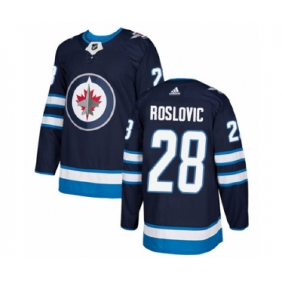 >Youth Adidas Winnipeg Jets #28 Jack Roslovic Premier Navy Blue Home NHL Jersey