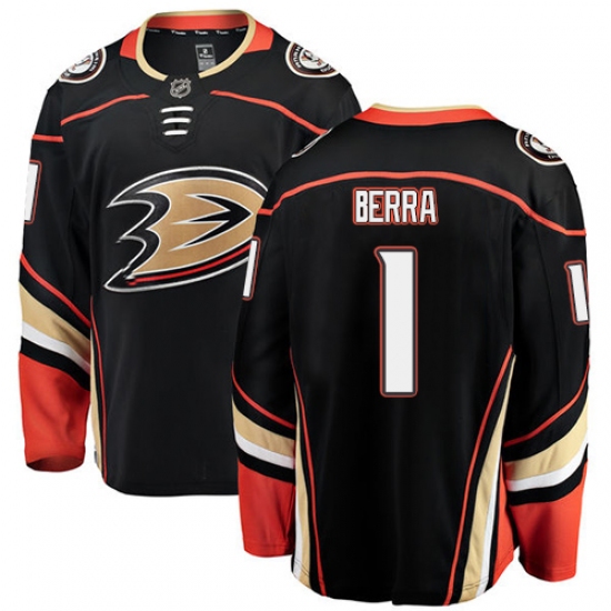 Youth Anaheim Ducks #1 Reto Berra Fanatics Branded Black Home Breakaway NHL Jersey