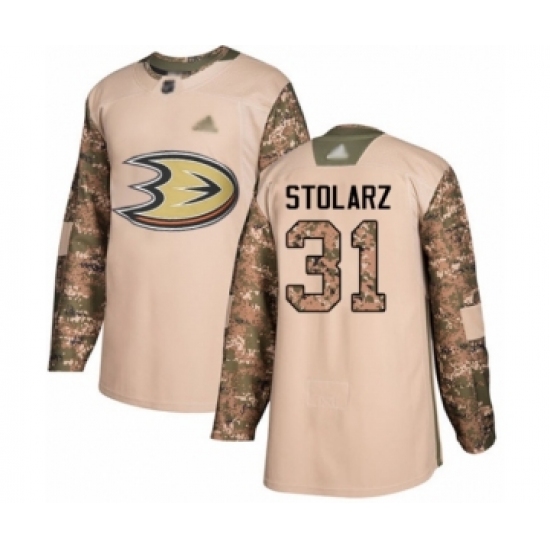 >Youth Anaheim Ducks #31 Anthony Stolarz Authentic Camo Veterans Day Practice Hockey Jersey